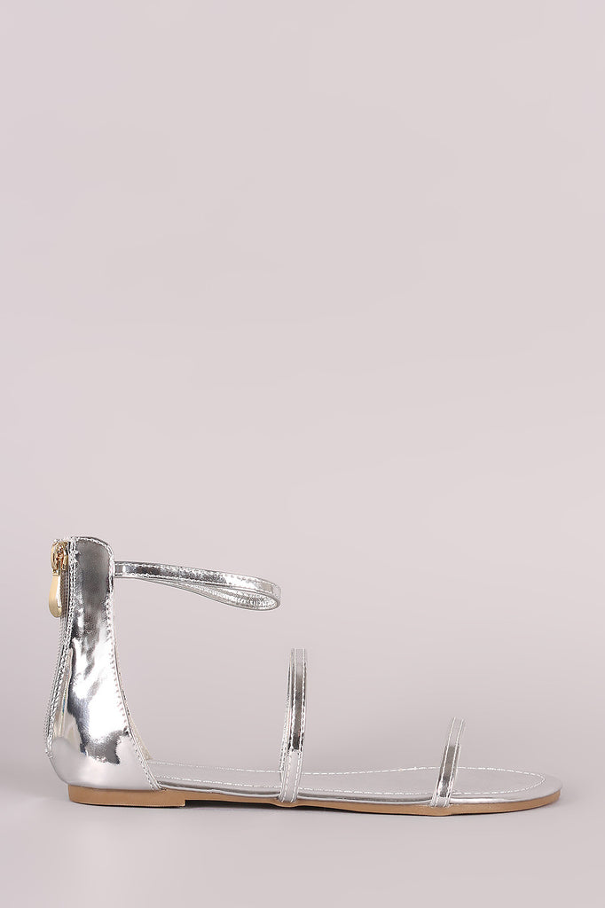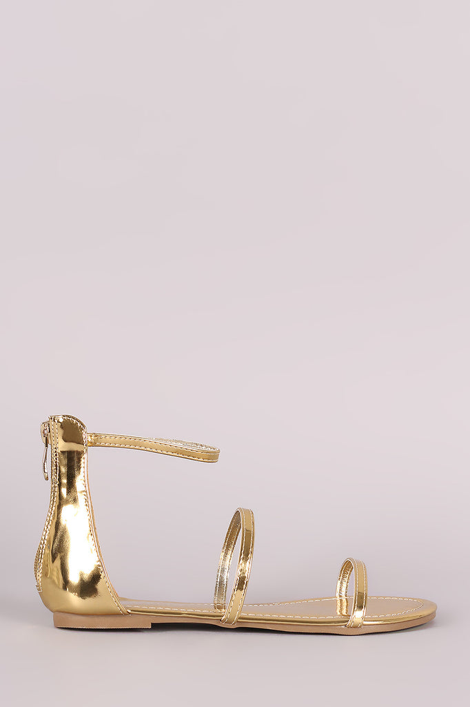This fabulous sandal features an open toe silhouette, triple skinny straps design, lightly padded insole, and rear zipper closure for easy on/off.